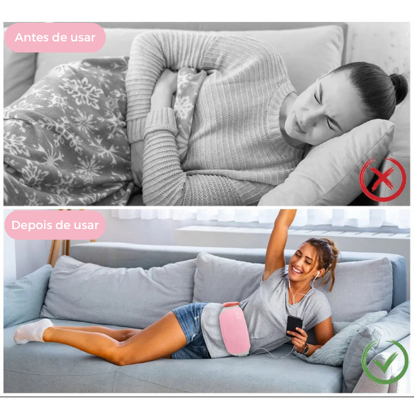 Com tecnologia de aquecimento inteligente e vibração relaxante, ela oferece um alívio térmico eficaz e constante — onde você estiver.